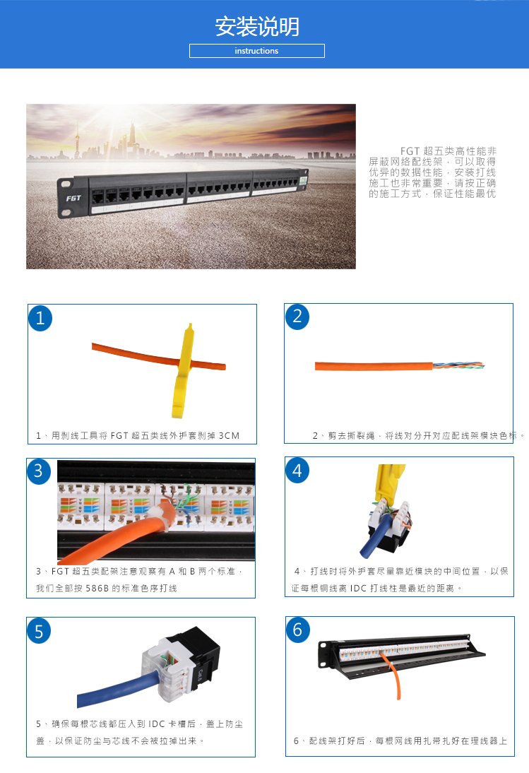 FGT 24口超五類非屏蔽網絡配線架該產品執行標準:YD/T 926.3、ISO/IEC 11801 、ANSI/TIA-568.2-D。支持話音通訊系統、10Base – T、16 Mbps 、100Base – T、155Mbps和622 Mbps ATM 、1000 Mbps、多媒體等方面的高速應用。
